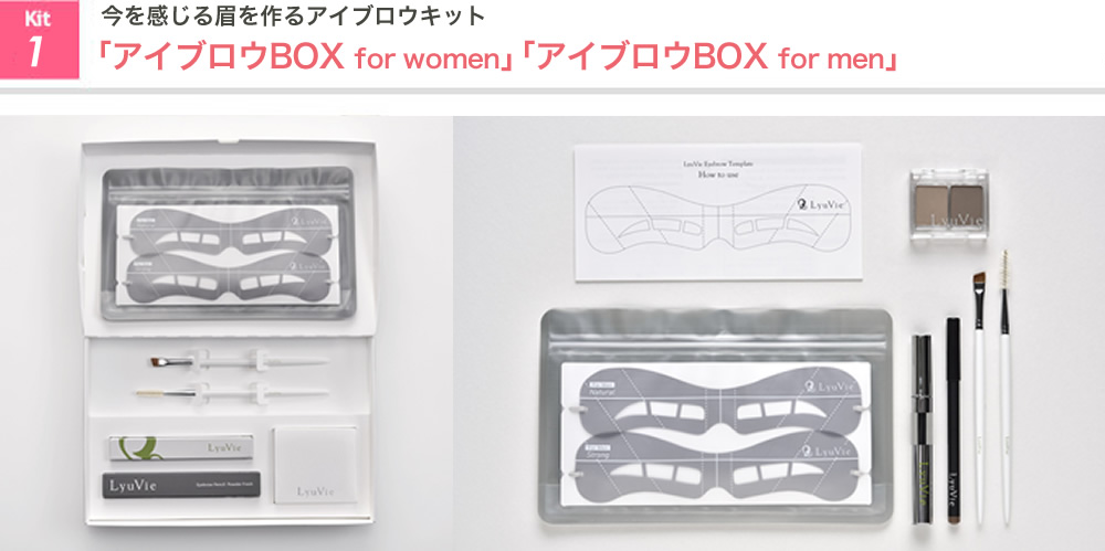 新しく開発したアイブロウテンプレートが入った眉メイクキット。